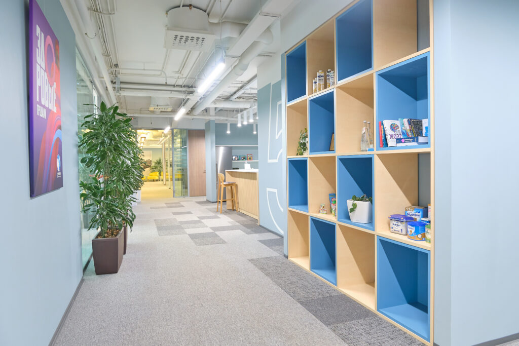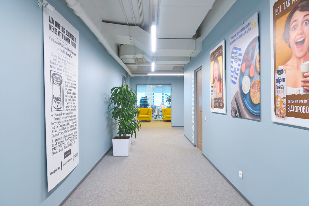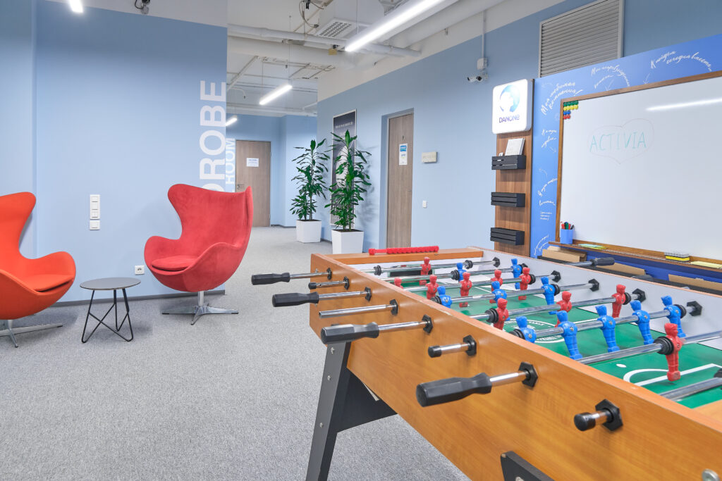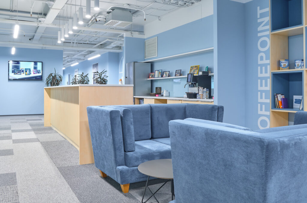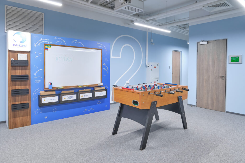 Danone. О проекте. Вид работ Генеральный подрядчик Площадь объекта 6 700 м2 Комплекс работ ДизайнРабочее проектированиеПолный комплекс работ по строительствуОтделке и инженерному оснащению помещений