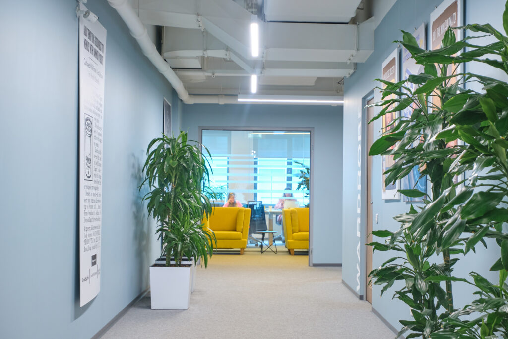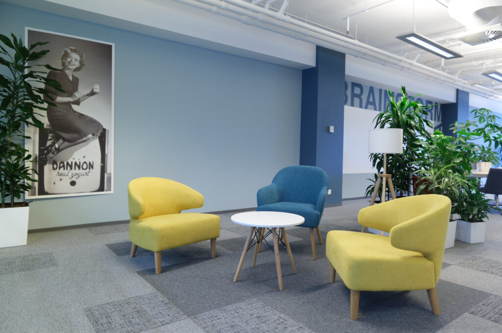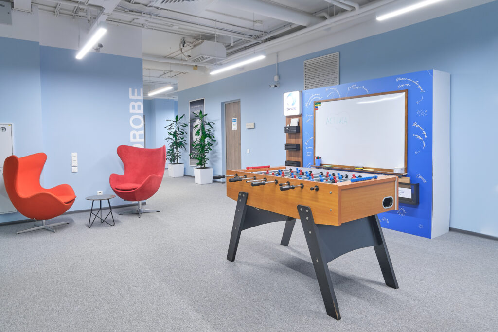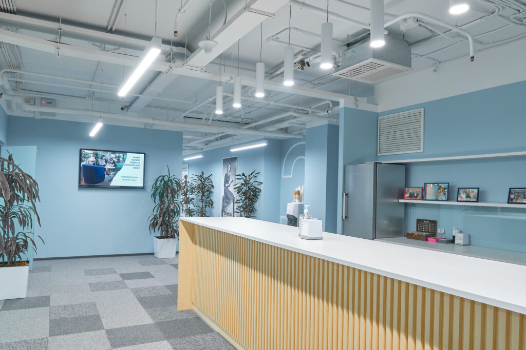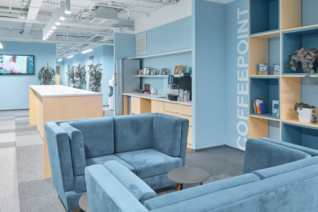 Danone. О проекте. Вид работ Генеральный подрядчик Площадь объекта 6 700 м2 Комплекс работ ДизайнРабочее проектированиеПолный комплекс работ по строительствуОтделке и инженерному оснащению помещений